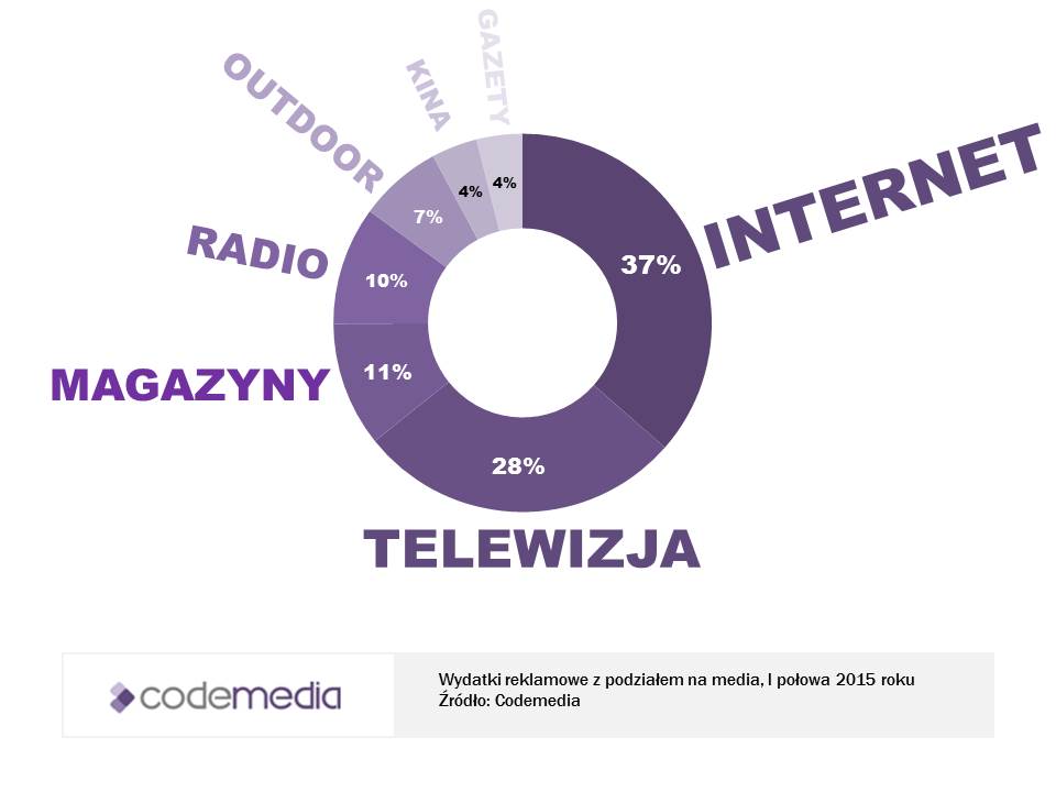 Drugim najpopularniejszym medium była telewizja, gdzie firmy ulokowały ponad 33 miliony złotych (28% nakładów). Jest to kwota o ok 2% większa niż w ciągu pierwszych 6 miesięcy 2014 roku. Reklamy najczęściej pojawiały się w Polsacie i TVN. Bardzo chętnie wybierany był kanał informacyjny TVN24, wyprzedzając TVP1 i AXN. Wysoko uplasowały się takie kanały tematyczne jak Discovery Channel, National Geographic Channel i Comedy Central.