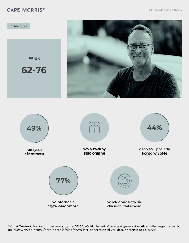 Pokolenie to całkiem niesłusznie uważane jest za konserwatywne, mało cyfrowe i przywiązane do tradycyjnych mediów, a przecież prawie połowa deklaruje korzystanie z internetu. Owszem, wciąż najskuteczniejszymi metodami dotarcia będzie tutaj telewizja, radio i prasa, a nawet telemarketing. Jednak prawie połowa pokolenia posiada profil w social mediach, a boomerzy coraz częściej (w szczególności ci młodsi) decydują się na wybór zakupów online.