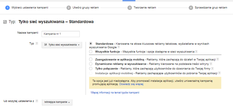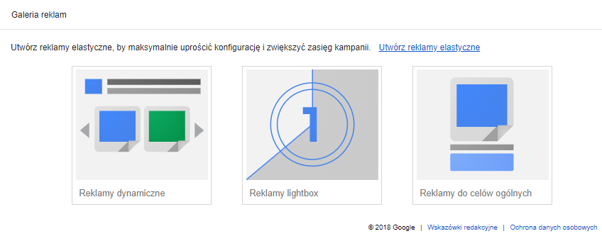 Pierwszą z nich, dość istotną, jest brak galerii reklam. Dotychczas tworząc reklamy w kampaniach w sieci reklamowej, mogliśmy wybrać spośród kilku typów: