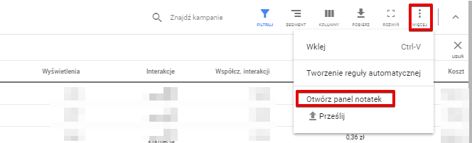 Notatki są banalnie proste w obsłudze i mogą pomóc w przypadku, gdy kilka osób pracuje na danym koncie lub gdy zdarza się nam zapomnieć, co dokładnie robiliśmy na poszczególnych kampaniach w ostatnich tygodniach (sama historia zmian często przecież nie wystarcza). Notatki będą zaznaczane w raportach i na wykresach skuteczności, co dodaje im użyteczności.