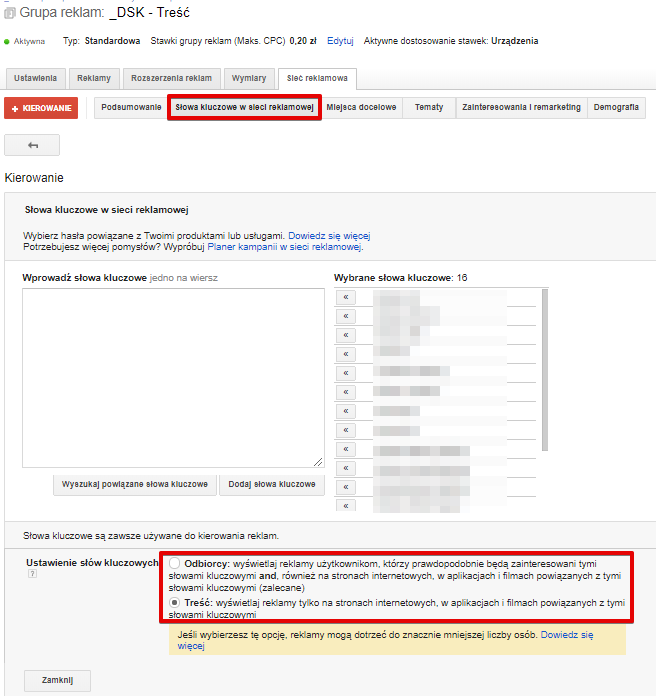 8. Koniec kierowania kampanii GDN na słowa kluczowe