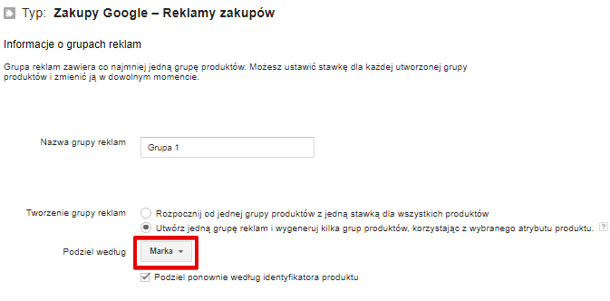 Google Ads nie pozwala już na utworzenie wstępnej segmentacji podczas tworzenia kampanii produktowych. Automatyczny podział na Marki, Typy Produktów czy Identyfikatory pozwalał zaoszczędzić sporo czasu przy tworzeniu nowych kampanii PLA. Było to szczególnie przydatne w sytuacji, gdy sklep posiada bardzo bogaty asortyment, a co za tym idzie rozbudowany feed produktowy.