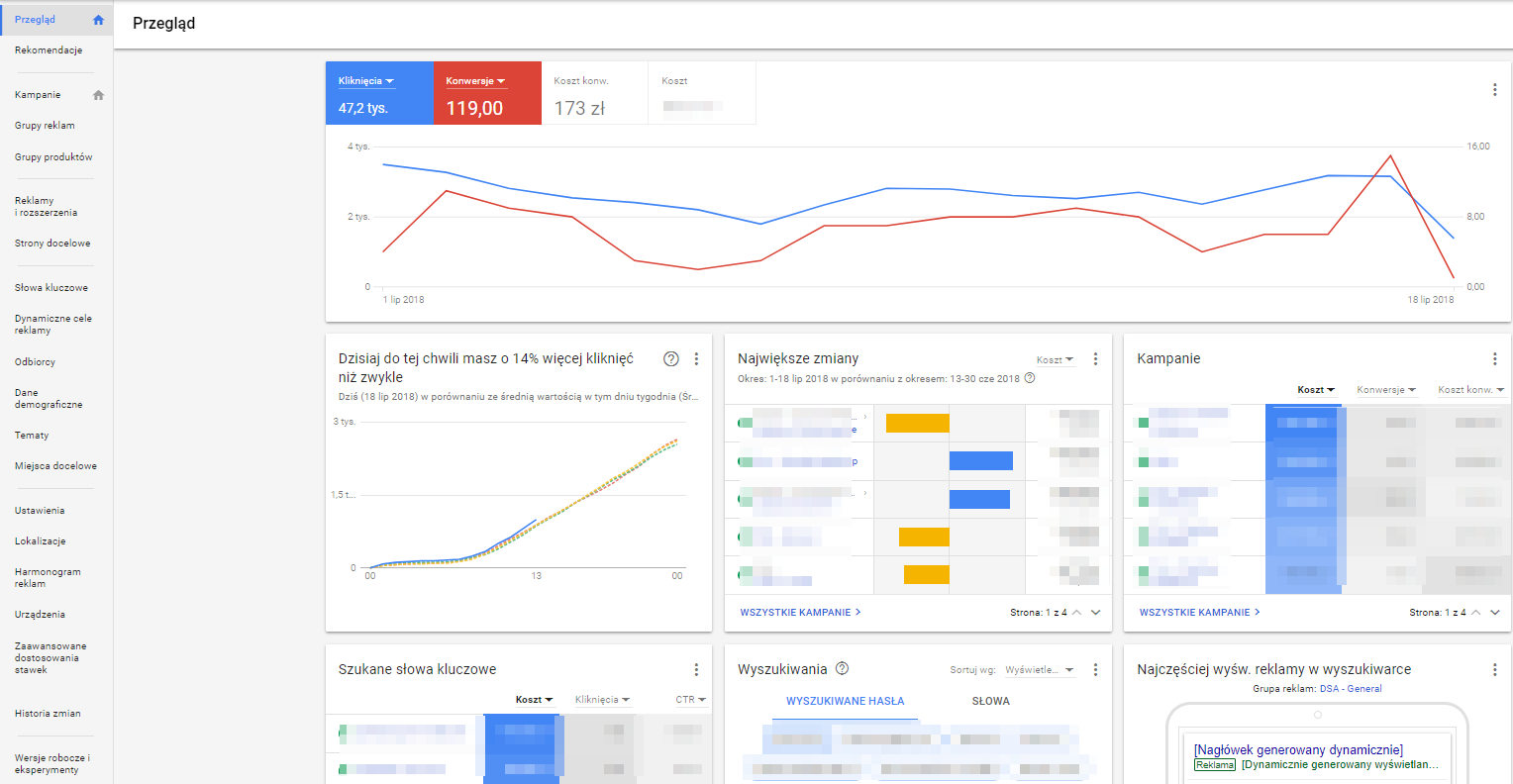 Google Ads na chwilę obecną ma sporo niedoróbek, m.in.: lubi się zawieszać, bardzo często pojawia się info o niezbędnym odświeżeniu strony lub o dostępnej nowszej wersji (mimo że właśnie na niej pracujemy). Pomimo tego, jak widać, oferuje sporo nowych rozwiązań, więc może warto zacisnąć zęby i zacząć przyzwyczajać się do nowego systemu? Tym bardziej, że prędzej czy później nie będzie już możliwości wyboru ;).