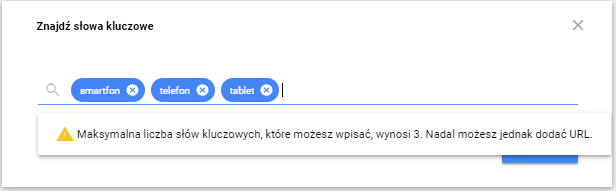 Nowy Keyword Planner został bardzo mocno ograniczony. Maksymalna liczba wyszukiwanych słów kluczowych to 3(!). Wynik podawany jest w jednej grupie reklam, w dodatku bez części istotnych danych. Niestety nowy Planer słów kluczowych stał się przez to praktycznie bezużyteczny.