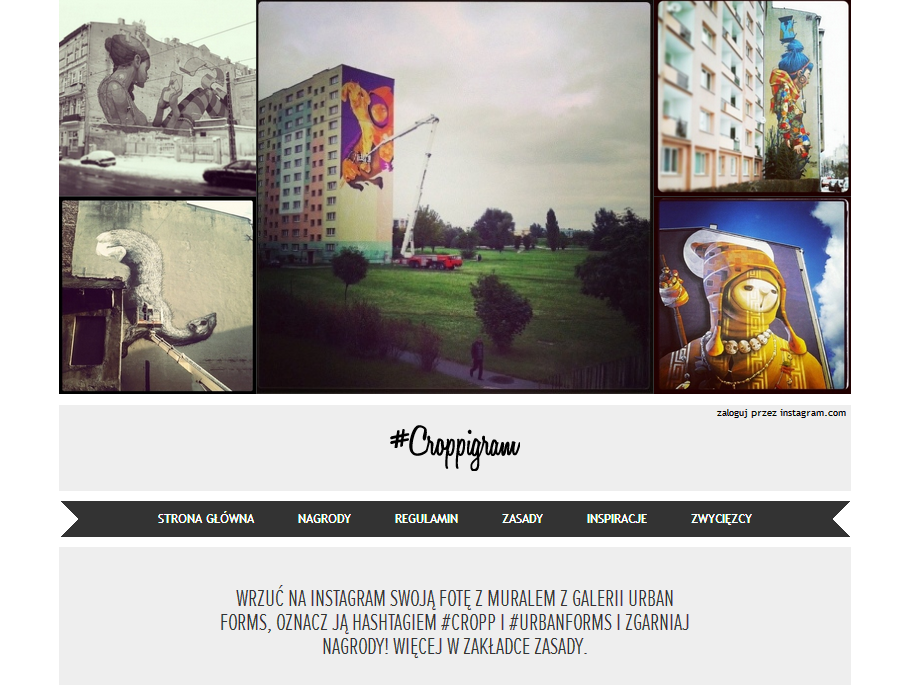 Sponsorem głównym festiwalu jest Cropp, który przygotował na Instagramie konkurs na najlepsze zdjęcia z Galerii Urban Forms #croppigram – osoby, które umieszczą w aplikacji Instagram, autorskie zdjęcia prezentujące mural z galerii Urban Forms oraz oznaczą je poprzez hashtagi #cropp i #urbanforms mogą zdobyć nagrody: