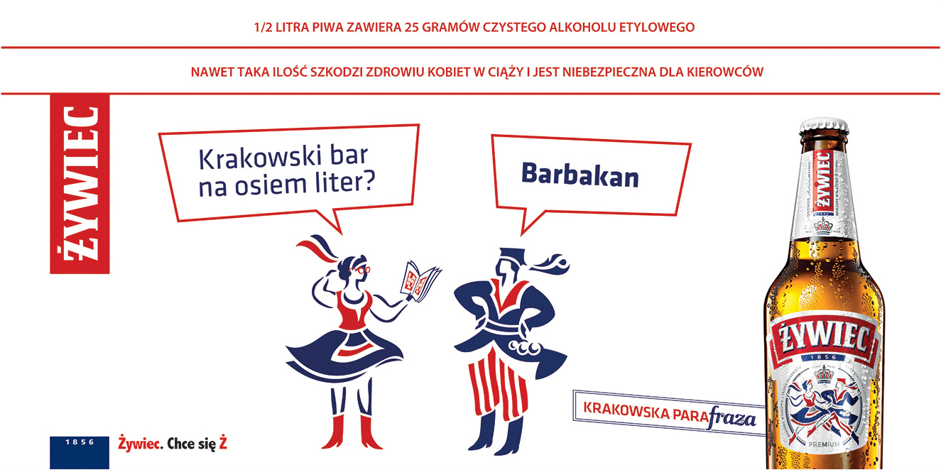 Krakowiacy tworzą parę z Żywcem odkąd piwo to zyskało uznanie na świecie. Dla podkreślenia tego faktu marka po raz drugi wprowadza w Krakowie komunikację, której bohaterem jest krakowska para, widniejąca na etykiecie piwa od połowy XX w. W akcji „Krakowska Parafraza” para prowadzi zabawne dialogi nawiązujące do miejscowych symboli. Żywiec w charakterystyczny dla marki, humorystyczny sposób bawi się słowem i odwołuje do lokalnych skojarzeń.