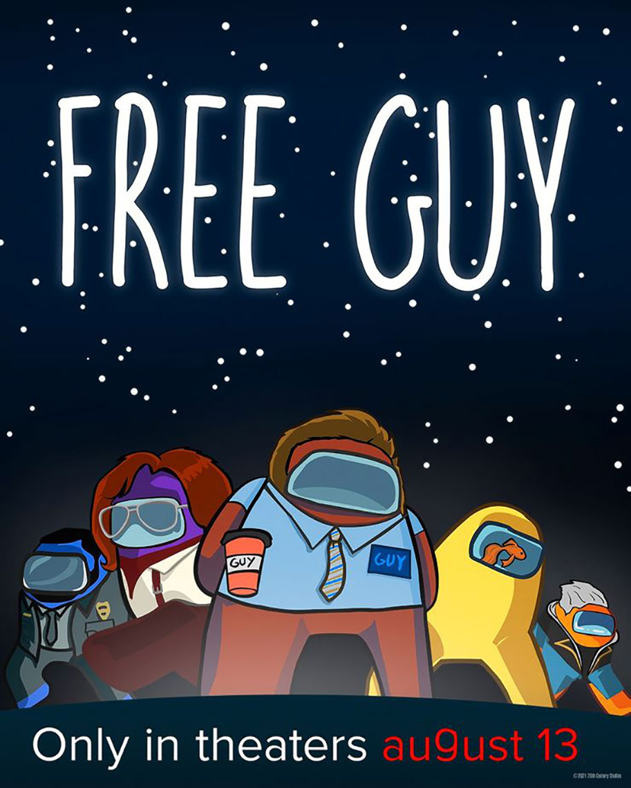 Najnowsze działania marketingowe promujące film obejmują stworzenie serii plakatów inspirowanych kultowymi grami. Na każdym plakacie widnieją główne postaci z filmu Free Guy, przedstawione w taki sposób, by bezpośrednio nawiązać do znanych gier – m.in. Super Mario, Minecraft, Among Us czy GTA.