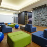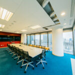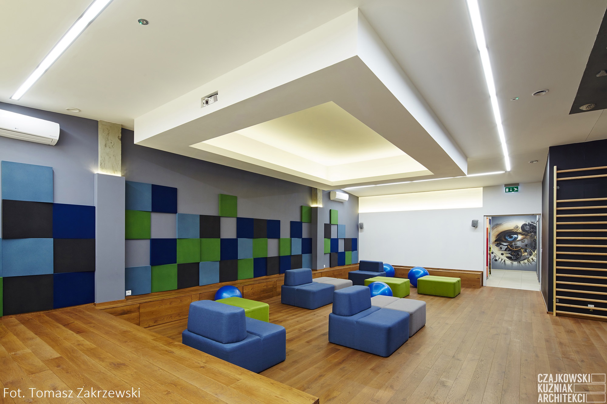 Ze względu na istniejącą komunikacje oraz ograniczenia dostępu do oświetlenia dziennego, strefa wielofunkcyjna została ulokowana w centralnej części, stając się tym samym 'sercem biura. Składa się na nią jednoprzestrzenne pomieszczenie, które pełni zarówno funkcję konferencyjną jak i rekreacyjną. Zastosowanie modułowych mebli oraz uniwersalnego oświetlenia zapewnia możliwość elastycznej zmiany tego obszaru w zależności od potrzeb – tłumaczą projektanci.