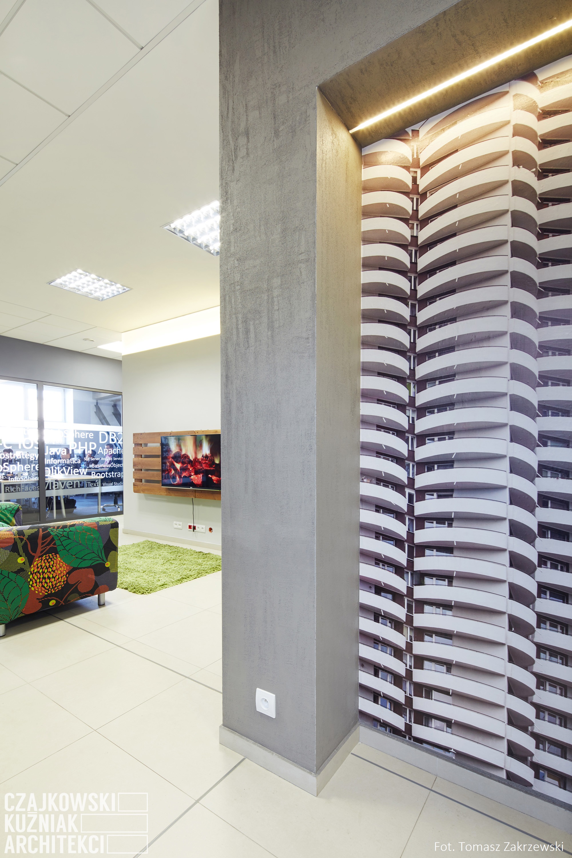 Osoby odpowiedzialne w JCommerce za aranżację, podkreślają, że chciały, aby w biurze było kolorowo, nowocześnie, a jednocześnie przytulnie. Dodają jednak, że nie chodzi o stworzenie pracownikom drugiego domu, z którego nie muszą się ruszać i wszystko mają pod ręką. Ideą było wykreowania miejsca, w którym będzie można nie tylko wygodnie pracować, ale też znaleźć chwilę wytchnienia czy też miejsce do popracowania w samotności, kiedy koledzy z pokoju zbyt głośno myślą.