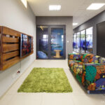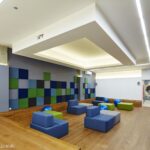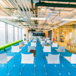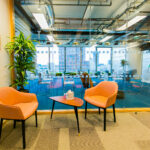 Zamiast ścian zobaczymy tu przeszklenia – dzięki temu, przebiegając w pośpiechu korytarzem, można pomachać do kumpla „z innej planety”, nie przeszkadzając jednocześnie w pracy pozostałym osobom.
