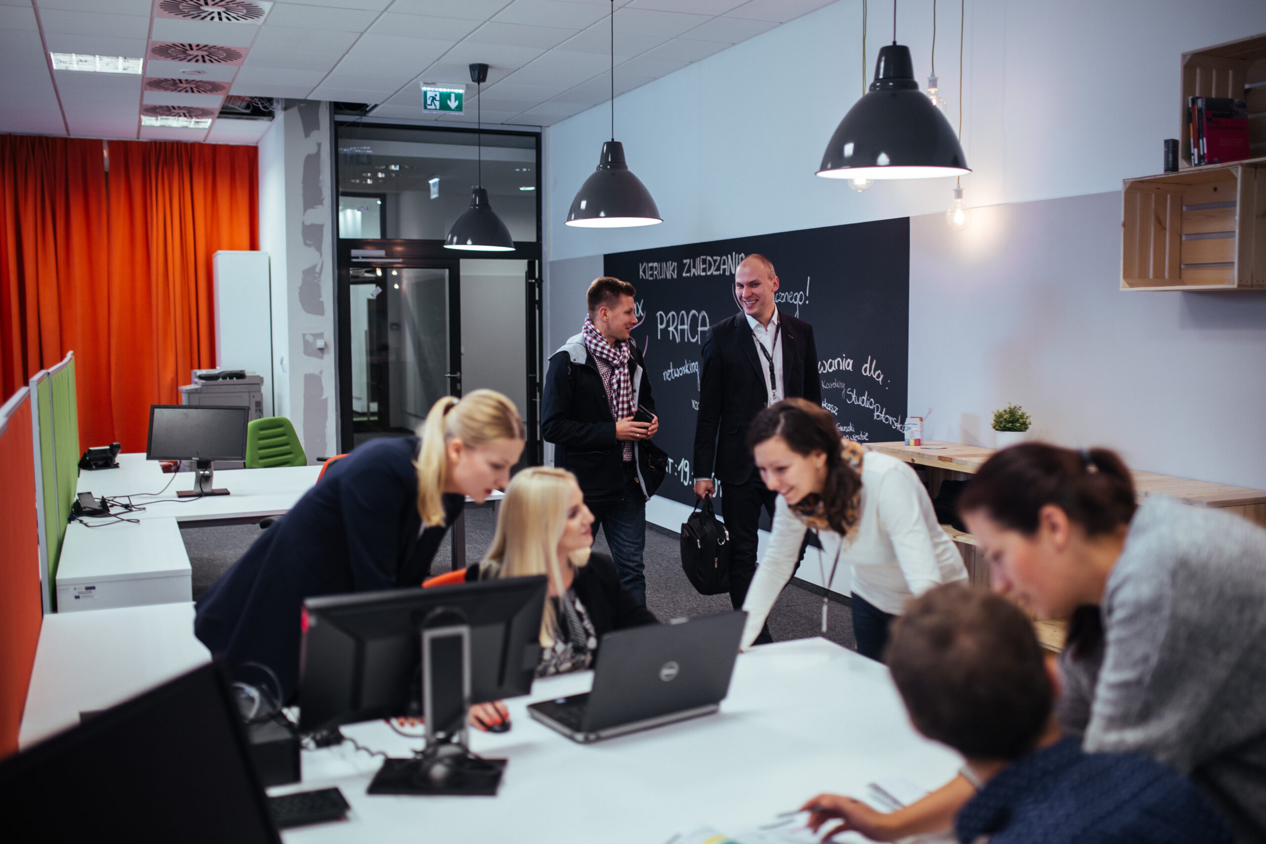 STARTER w zeszłym roku wspólnie z firmą projektową – „Studio Potorska” odświeżył wnętrze swojego coworkingu, aby było jeszcze bardziej atrakcyjne i funkcjonalne. Przestrzeń jest kolorowa. Znajdują się w niej biurka, która pozwalają na swobodną pracę, ale także przyjazne pufy i siedzenia ułatwiające relaks i wspólną rozmowę. Półki z książkami tworzą nietypową biblioteczkę, której zasoby przydają się osobom rozwijającym biznes. Duże okna sprawiają, że przestrzeń jest jasna, a kolorowe meble i akcesoria ocieplają ją i sprawiają, że to miejsce jest przytulne i zachęca do codziennego spędzania w nim czasu.