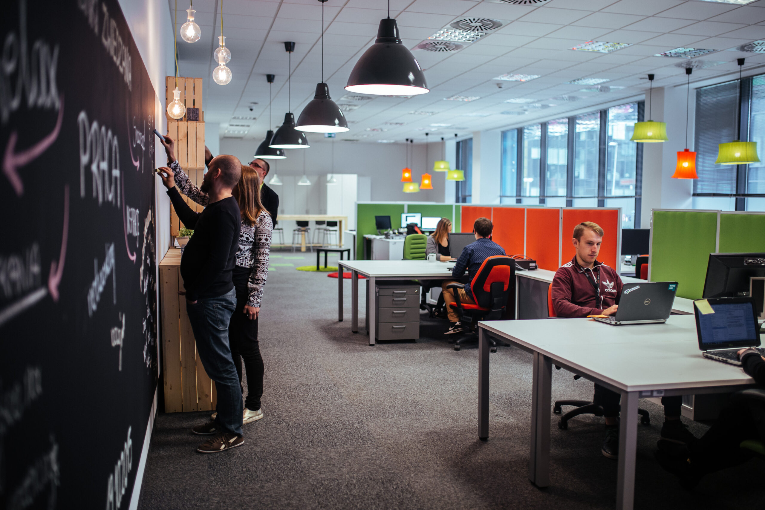 – Podstawą naszych działań jest praca w teamach, częste burze mózgów, ciągły kontakt i wymiana przemyśleń. Dlatego siedzimy naprzeciw siebie, a nasze biurka nie tworzą boksów oddzielających pracowników od siebie – tłumaczy Anna Wylężek, managerka jednego z teamów STARTERA. – Na ścianach mamy motywujące plakaty, ale także wspólne zdjęcia czy zabawne cytaty członków zespołu. Takie wnętrze wpływa na pozytywną atmosferę w biurze – dodaje Anna Wylężek.