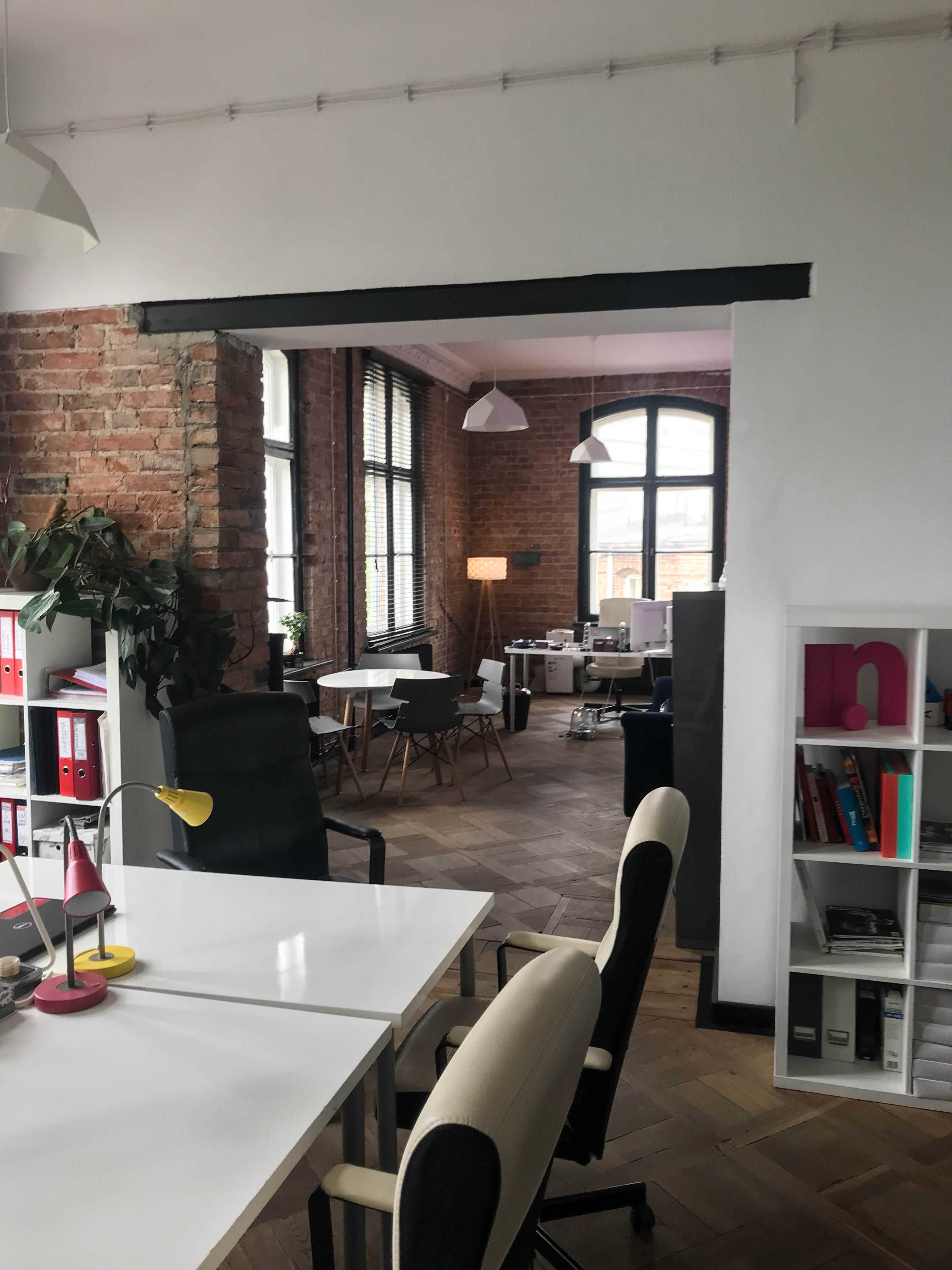 W biurze panuje względna swoboda. Nie planujemy ani piłkarzyków, ani stołu do bilarda. Planujemy za to np. pomalowanie sufitów, ale na razie nikt nie dał rady z naszym briefem. Brakuje też dużych rzeźb, ale dostęp do nich jest utrudniony. Chwilę to potrwa, ale pracujemy nad tym! Biuro nie ma nigdzie drzwi, przestrzeń jest całkiem otwarta, nikomu to nie przeszkadza.