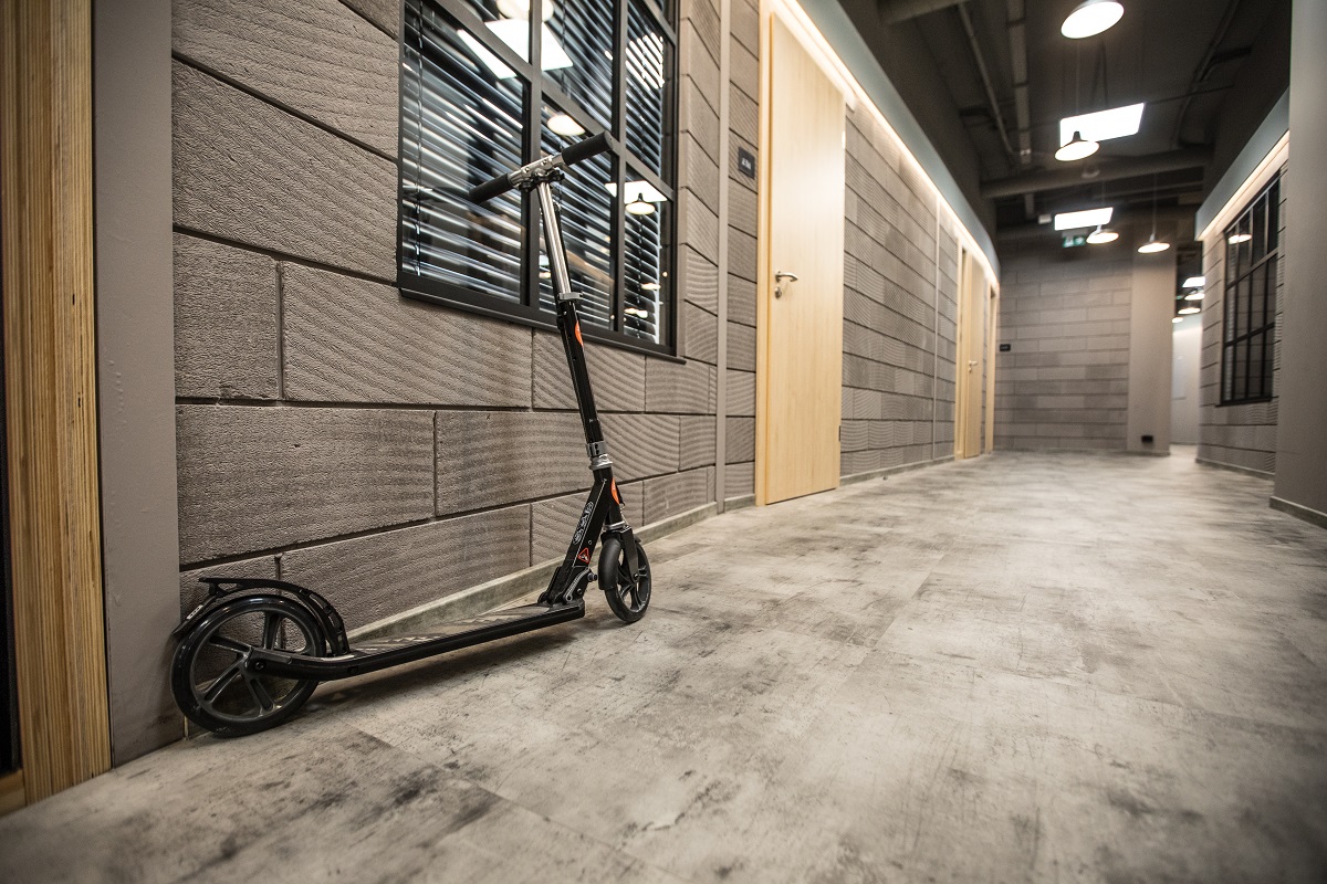 Dbamy także o biurowy wellness. Wypoczęty i zdrowy pracownik to efektywny pracownik. Nie ma zadowolonych klientów bez zadowolonych pracowników. Jeżeli stworzymy warunki pracy najlepsze, jakie możemy, wiemy, że nasi pracownicy będą dawać z siebie wszystko, bo praca programisty tak naprawdę jest pracą bardzo wymagającą. Staramy się dbać o dobrą atmosferę, którą nasi pracownicy doceniają. Na korytarzach stoją zaparkowane hulajnogi, dla bezpieczeństwa są kaski i ochraniacze. To nie wszystko. W jednym z „chill roomów” stoją piłkarzyki, gdzie indziej: stół do ping-ponga, stół z rozłożonymi puzzlami, tarcze do darta i sprzęt do ćwiczeń: bieżnia, wiosła. Mamy też „Kącik dla dzieci” urządzony z myślą o pociechach pracowników. Jeśli w nagłej sytuacji, ktoś nie ma z kim zostawić dziecka, wystarczy, że to zgłosi, a firma zaprosi opiekunkę, która przyjdzie do biura i będzie zajmować się dzieckiem.