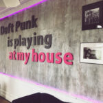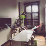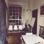 Dużo jest drobnych rzeczy, które cieszą oko. Pracując kreatywnie, musisz otaczać się rzeczami pięknymi, nie da się tworzyć w laboratorium pełnym plastiku i pleksi. Dlatego też jedna z głównych ścian została odrestaurowana aż do tynku, to na niej widnieje tytuł jednej z piosenek LCD SoundSystem. Tuż obok znajdziemy kolekcję zdjęć przywiezioną z Francji. Młody Salvador Dali przeplata się z kilkoma akcentami historii. Gdzieś obok kilka inspiracji rzemieślniczych z różnych butików ze świata: lampa z Sycylii od lokalnej śpiewaczki, która prowadziła design shop (przy okazji podarowała kilka świetnych, mocno etnicznych playlist), a lampy wiszące były natomiast ręcznie robione przez wykonawcę w Polsce – geometryczne, kontrastujące.
