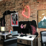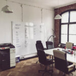 Biuro Huee to trochę cofnięcie się do korzeni. Jak przejmowaliśmy lokal po poprzednim najemcy, postaraliśmy się więc przywrócić tyle tradycyjnych elementów, ile to było możliwe. Podłoga, okna, ściany – zamiast ponownie je zakrywać, odrestaurowaliśmy je. Podłoga z XIX wieku skrzypi w ten swój unikatowy sposób! Tam, gdzie mogliśmy, dodaliśmy trochę czarnych akcentów, aby osiągnąć bardziej loftowy styl. Czerwona cegła, tynki, wysokość sufitów na ponad 4 metry pracują ze sobą doskonale. Staraliśmy się zwyczajnie nie zepsuć tej przestrzeni, a ją uwolnić. Biuro miało elementy stiuków, nie łataliśmy ich, nie uzupełnialiśmy. Teraz historia przenika się z teraźniejszością. Wszelkie instalacje zostały ponownie poprowadzone po ścianach, sięgnęliśmy po garażowe włączniki, przełączniki, przemysłowe kontakty.