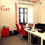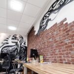 Dzięki wspólnym staraniom stworzone zostało miejsce dające przede wszystkim wyjątkową przestrzeń do swobodnych, kreatywnych spotkań grupowych, jak i zaciszne miejsca do indywidualnej pracy. Przestrzeń o powierzchni blisko 100 m2 została estetycznie zaprojektowana i podzielona na potrzebne do pracy pomieszczenia. Można wśród nich znaleźć pokój kreatywnych, gdzie przy trawowej ścianie toczą się co dzień burzliwe dyskusje, pokój interaktywnych, gdzie wiszące na suficie googlowe literki i ceglana ściana napędzają ich do działania czy łazienkę, w której króluje Facebook Na ścianach, jak w zabawach słownych, bawią się literki, na innych czarne tablice czekają na mapy myśli. Zgodnie z misją firmy na głównej ścianie pokoju interaktywnych widnieje napis: „Get Engaged”. Znalazło się i miejsce na pomieszczenie dedykowane spotkaniom, zarówno tym biznesowym jak bardziej casualowym. To właśnie w nim duży stół i spore okno z widokiem na wieżę zabytkowego kościoła Marcina Lutra zapraszają do dyskusji.