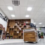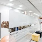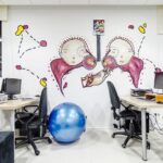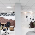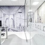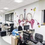 Przestrzeń została zorganizowana tak, aby sprzyjać efektywnej komunikacji między wszystkim działami w firmie. Projektując biuro postawiono na otwartą przestrzeń. Miejsca pracy są ergonomiczne, odpowiednio naświetlone i oddalone od siebie. Każdy dział ma wydzieloną swoją osobną część, dzięki temu ludzie czują się swobodnie i komfortowo. W urządzaniu biura brali udział wszyscy pracownicy. Każdy mógł wyrazić swoją opinię i stworzyć swój mini projekt. Ludzie decydowali o tym, jak będzie zagospodarowana przestrzeń wokół nich, gdzie będą stały biurka, jaki kolor mają mieć ściany, jakie elementy dekoracyjne zastosować. Wiele elementów dekoracyjnych jak: fototapety, graffiti czy rysunki na ścianach to projekty lub wykonanie pracowników.