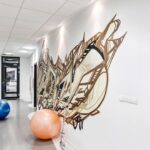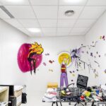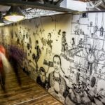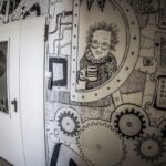 Wzdłuż głównego pomieszczenia biegnie ściana o długości 15 m. W całości pokrywa ją grafika, stworzona przez utalentowaną (jakże by inaczej!) rysowniczkę z zespołu agencji, Małgorzatę Bierozę. Jest to symbolicznie przedstawiony proces realizacji projektu: od koncepcji, przez „taśmę produkcyjną”, po efekt końcowy. Zaludniają ją fantastyczne stwory w towarzystwie najprawdziwszych pracowników Infinity Group. Ogromna liczba dopracowanych, miniaturowych detali sprawia, że wciąż – po 6 latach w tej siedzibie – przechodząc korytarzem odnaleźć można nowe, zaskakujące szczegóły.