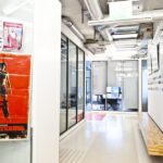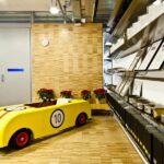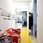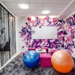 Biuro to nie tylko przestrzeń na biurka. Znalazło się tu również miejsce na inne pomieszczenia. Kuchnia to centralne miejsce biura. Oprócz standardowego wyposażenia są w niej kolorowe krzesła barowe, sofa, pufy, Xbox, darty, sterta gazet marketingowych do swobodnego czytania i ogromna pomarańczowa sofa, dla tych, którzy potrzebują się zrelaksować. Uwagę przykuwa jedna ze ścian, która pokryta jest imitacją gęstej, soczystej zielonej trawy. Interesującym rozwiązaniem są specjalnie wydzielone strefy i miejsca, które doskonale sprawdzają się podczas spotkań międzydziałowych czy burz mózgów. Charakteryzują się intensywnymi barwami, ciekawymi fakturami mebli, co pobudza kreatywne myślenie. Dodatki takie jak hulajnogi, ogromne piłki, wygodne kanapy czy kolorowe pufy pozwalają się zrelaksować, zebrać myśli, odpocząć.