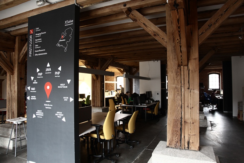 Do własnych potrzeb, by pracowało się efektywniej, dopasowały otoczenie zespoły Chilid Web Design Agency (10 osób) i XSolve Skillful Software House (50 osób). Samodzielnie zaprojektowane wraz z przyjaciółmi (projekt architektoniczny Agnieszka Glińska, aranżacja wnętrza Chilid i Anna Pięta) biuro w budynku Loftów idealnie odzwierciedla wartości i DNA firmy. W przestrzeni zwycięża pomysł, nie drogie meble. Można tu także odpocząć na hamakach lub sofach, pograć na Wii, w piłkarzyki, pojeździć na deskorolkach, boksować w gruszkę.