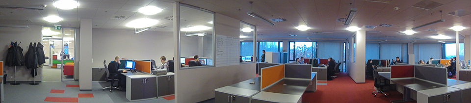 Ze względu na specyfikę firmy, biuro dzieli się na dwie główne strefy. Łączy je tunel obłożony bluszczem, który wprowadza zarazem element natury do wnętrza. Miejscem zachowującym równowagę między pracą i relaksem jest playroom, wyposażony w konsolę Xbox czy stół do ping-ponga: