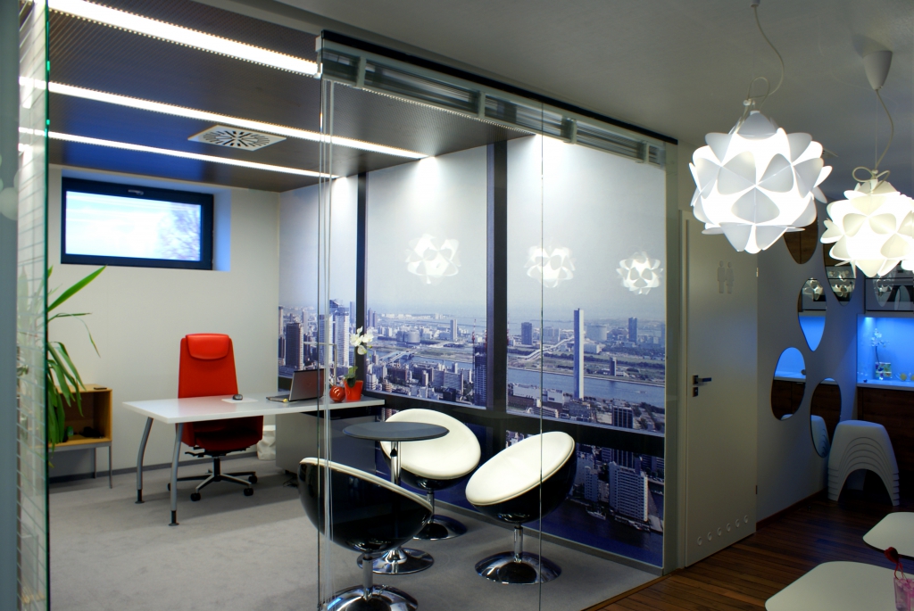 Głównymi elementami wystroju są murale ścienne przedstawiające zestawienie najważniejszych budynków stolicy, a także wyeksponowana na wielkiej szklanej ścianie grafika mostu, która stanowi doskonałe graficzne połączenie dwóch sal konferencyjnych. Miejskiego charakteru dopełniają drzewka owocowe ustawione w przestrzeniach między biurkami – kumkwaty, cytryny i mandarynki.