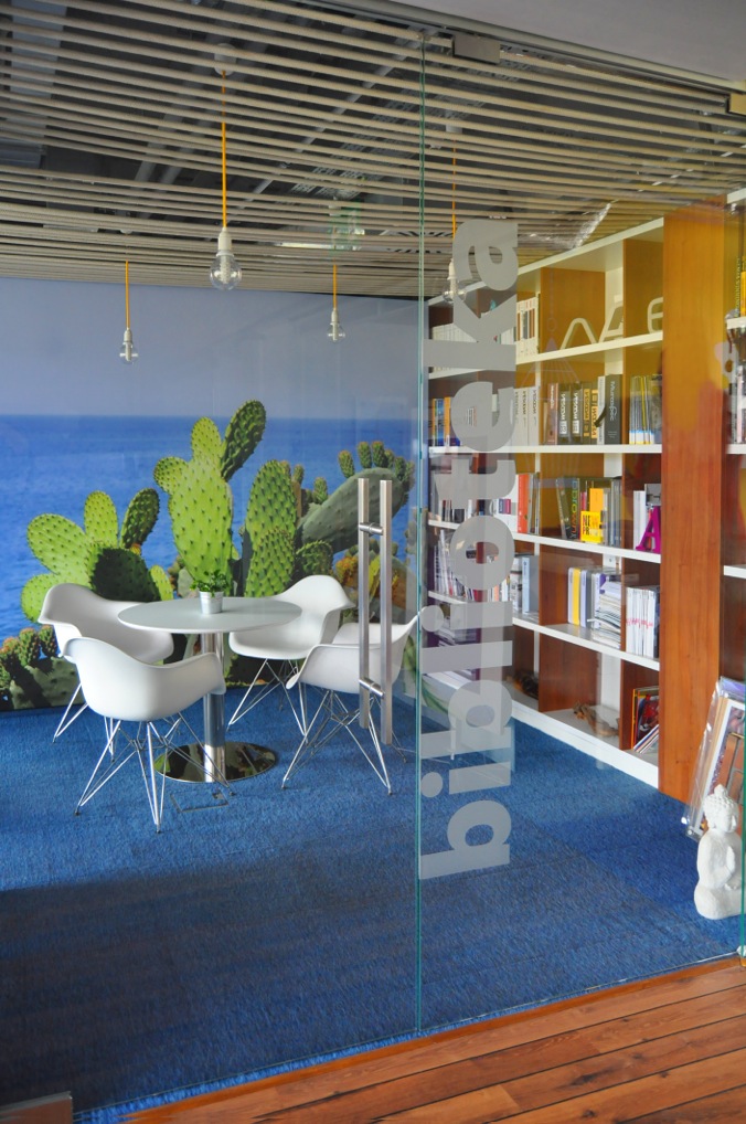 Wszystkie wnętrza urządzone są w minimalistycznym stylu. Na części ścian widać cegłę, a inne są całkowicie surowe. Ascetyczny styl podkreślany jest również przez występujące szkło. Wszystko przełamane jest surrealistycznymi dziełami sztuki autorstwa nie tylko lokalnych malarzy. To połączenie nowoczesności z prostotą tworzy klimat firmy.