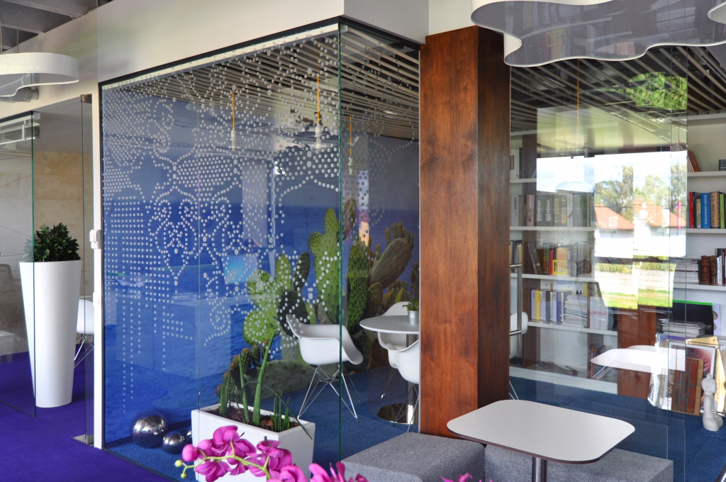 To miejsce, które zajmuje całą powierzchnię najwyższego piętra siedziby Grupy Advertis. Każdy element showroomu ma służyć inspiracji, prezentacji materiałów i technologii, które powstają w dziale produkcji. Na odwiedzających czeka mnóstwo niespodzianek: materiał, który wydaje się sztywny okazuje się miękki w dotyku, płytki tylko z pozoru są ceramiczne – zmysły odwiedzających wystawiane są na próbę. Centralne miejsce zajmuje makieta, składająca się z ruchomych kwadratów, która jest swoistą prezentacją oferty Grupy Advertis. Klienci mogą zobaczyć jak prezentują się liczne tworzywa, jak reagują na światło, mogą poznać niestandardowe metody łączeń faktur i nanoszenia nadruków na różne formaty.