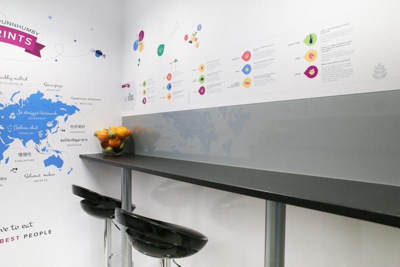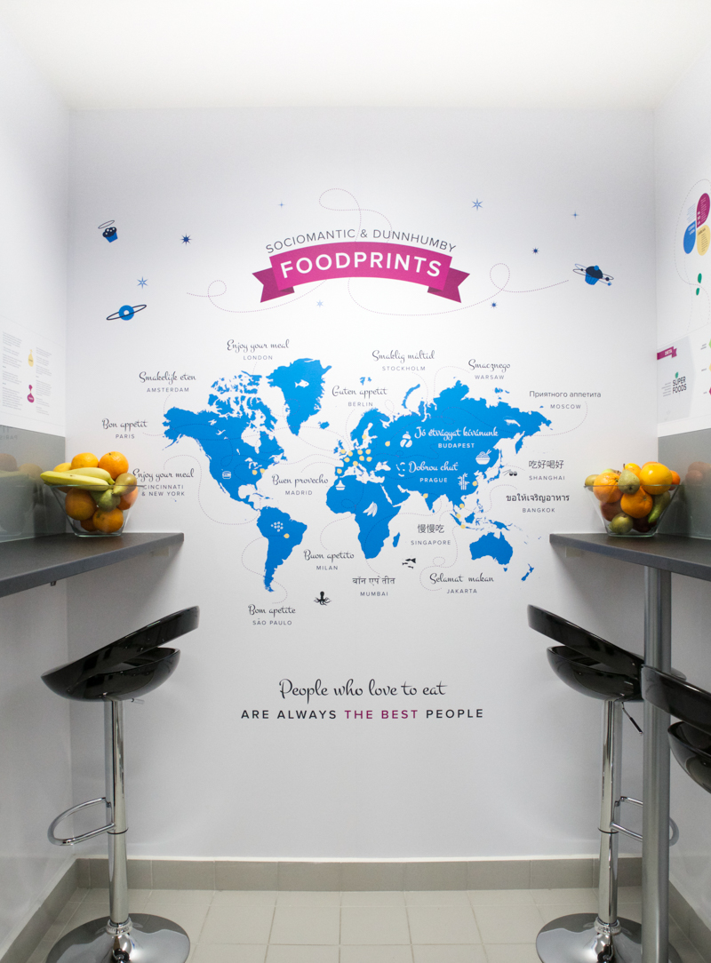 Niemal osobny projekt stanowiła aranżacja kuchni. Motyw przewodni stanowiło zdrowe odżywianie oraz ekologia. Z grafik na ścianach kuchni członkowie zespołu dowiadują się co powinny, a czego nie powinny zawierać spożywane przez nich produkty. Na uwagę zasługuje wielka mapa smaków – „Sociomantic&dunnhumby Foodprints”, oraz wkomponowane w grafikę lustro masterchefa. Projektu dopełni wkrótce specjalna przestrzeń służącą do wymiany przepisów. Zadbano także o detale. W wystrój biura wkomponowane zostały także w 100 proc. spersonalizowane, jak przystało na firmy zajmujące się reklamą osobistą i analizą indywidualnych zachowań konsumentów, kubki z motywami znanymi z murali.