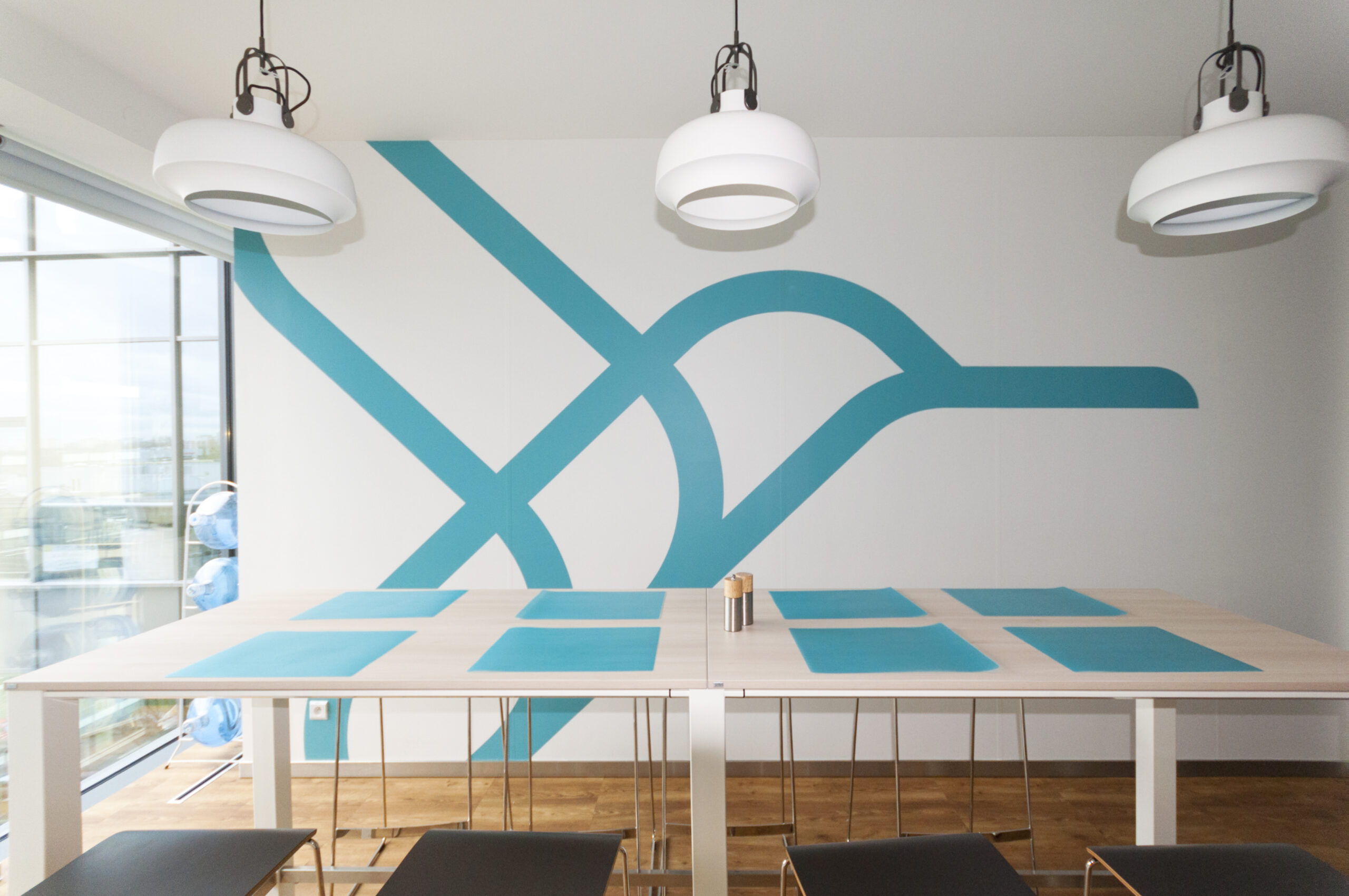 System identyfikacji wizualnej wdrożony przez Grupę Advertis obejmował reprezentacyjną strefę recepcji z podświetlanym logotypem, oznakowanie sal konferencyjnych, tabliczki przydrzwiowe z satynowej pleksi oraz fototapety pokrywające ściany i szyby. Ważne było wykreowanie indywidualnych wizualnie przestrzeni, przy zachowaniu konsekwencji kompozycyjnej – podkreśla Aldona Strup z Grupy Advertis.