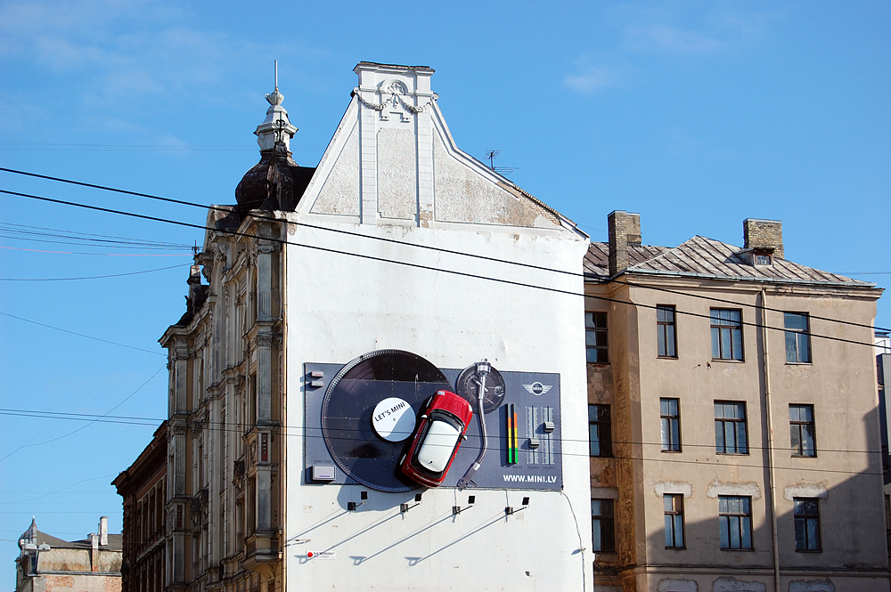 Idąc ulicą, spoglądając na otaczające nas drapacze chmur, nagle natykamy się na ceglany balkon w jednym z nich. Każdy, kto by go zobaczył, zapewne odrazu pomyśli: o co chodzi? Ceglany balkon w szklanym wieżowcu?! Przyglądając mu się bliżej, łatwo jednak dostrzec, iż jest to reklama marki Absolut. Niekonencjonalna, zwracająca na siebię uwagę nietypowym miejscem, po prostu pomysł idealny, żeby się wyróżnić i przebić do odbiorcy.