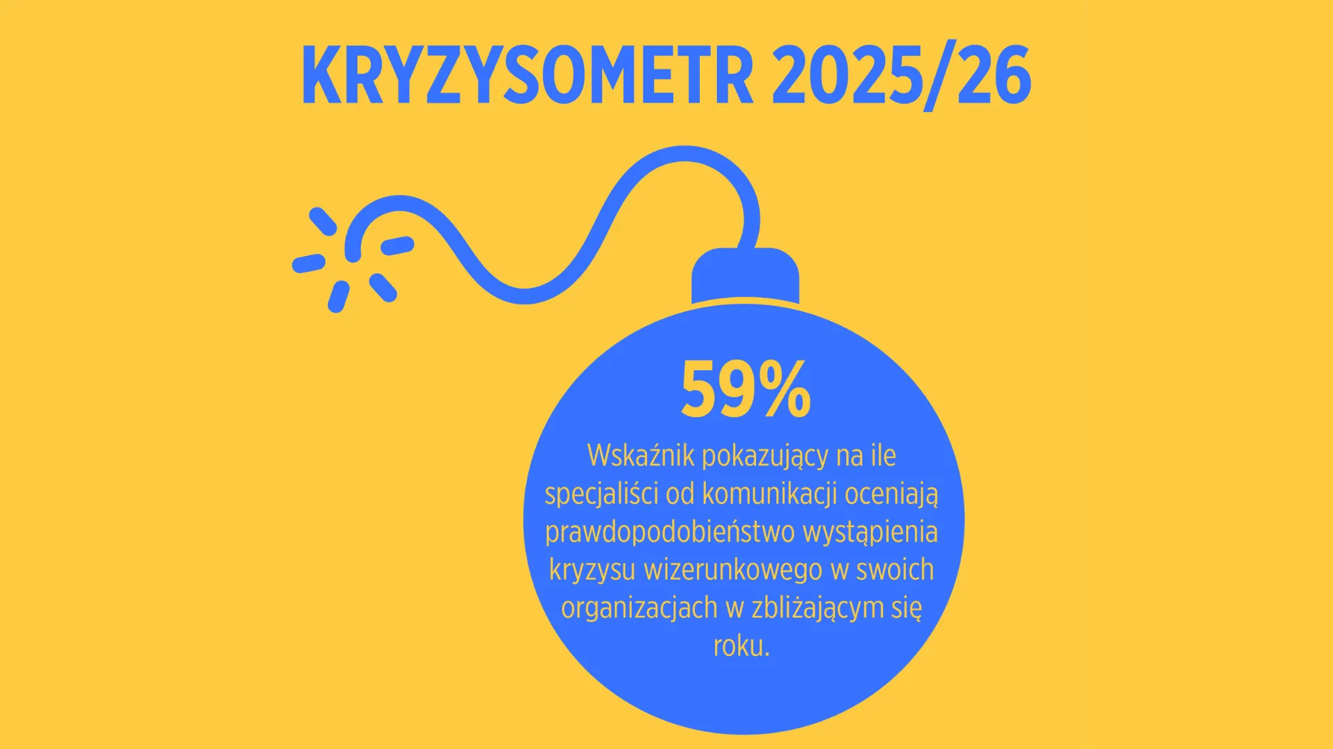 Wskaźnik Kryzysometru, tworzony corocznie przez Alert Media Communications na podstawie opinii ponad 100 dyrektorów komunikacji, managerów i rzeczników prasowych, w 2025 roku wyniósł 59%. To wzrost o 3 punkty procentowe rok do roku i drugi najwyższy wynik w historii badania – zaraz po rekordowym 2021 roku (60%).