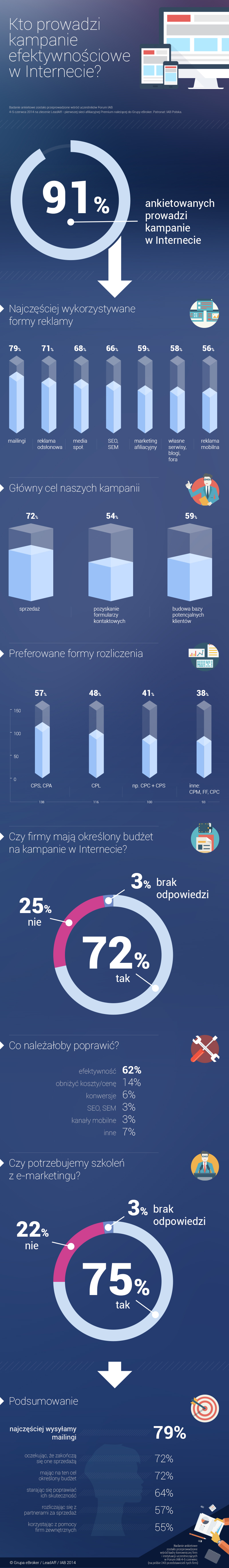 Zaprezentowane infografiki przybliżają profil osób, które prowadzą kampanie efektywnościowe w Internecie, będąc efektem ankiety przeprowadzonej przez program afiliacyjny leadAff wśród kadry kierowniczej firm i instytucji uczestniczących w czerwcowym Forum IAB.