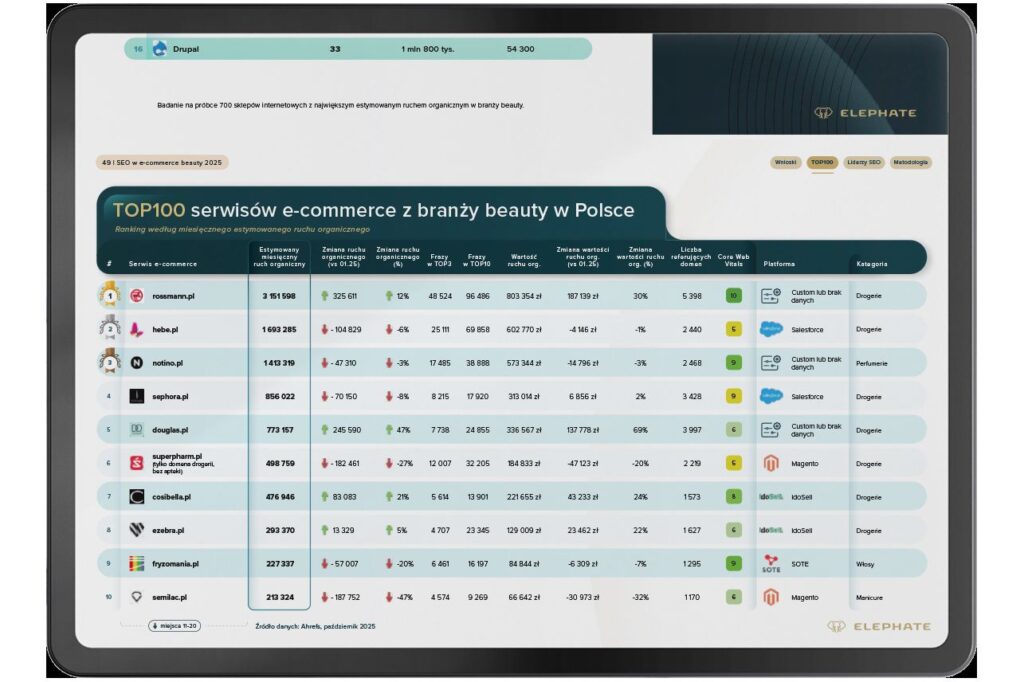 Źródło: Raport Elephate SEO w e-commerce beauty 2025