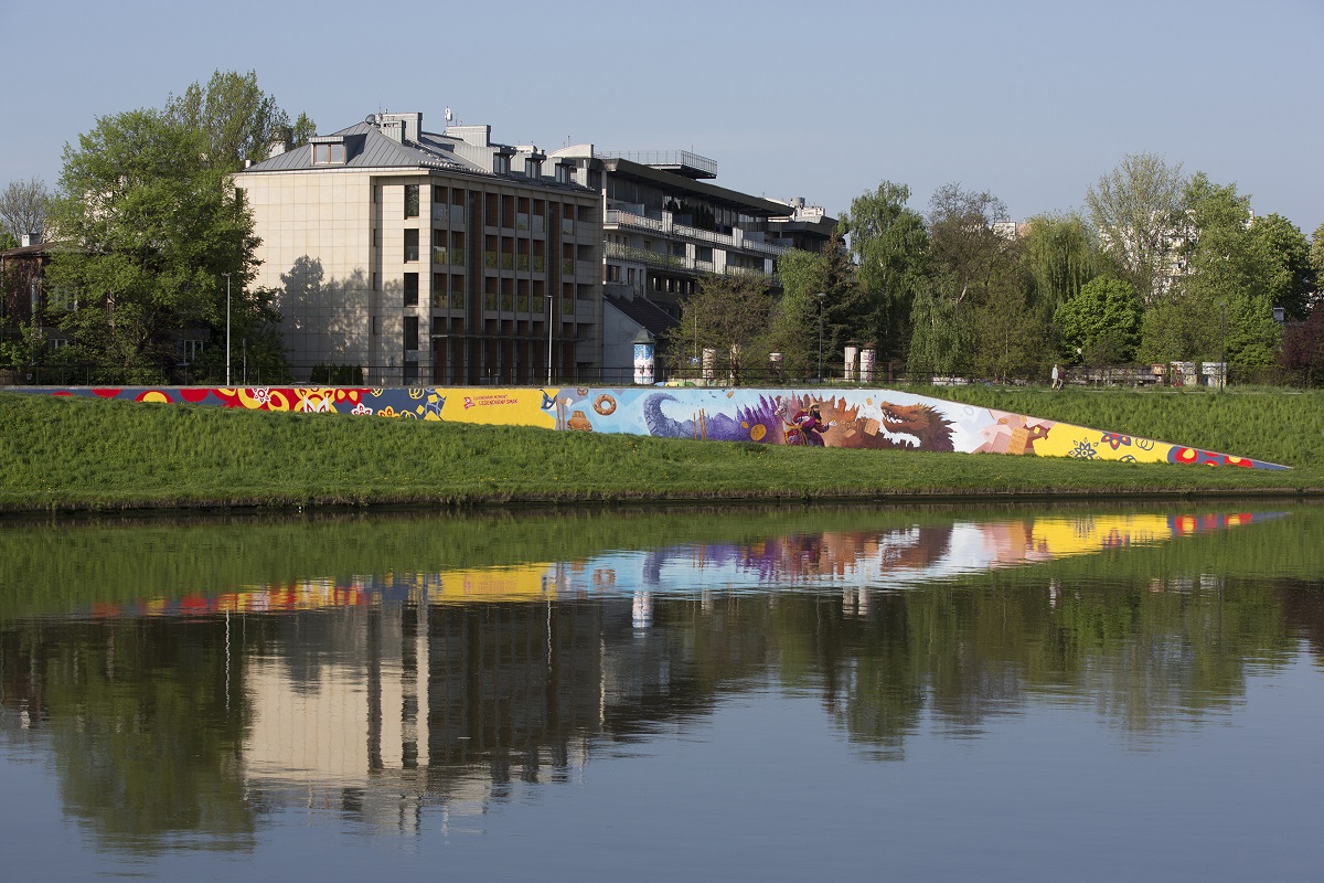 To, że Kraków zmaga się ze smogiem to nie legenda, a realny problem mieszkańców stolicy Małopolski. Zanieczyszczone powietrze nie tylko negatywnie wpływa na ich zdrowie, ale i utrudnia cieszenie się pięknem miasta np. podczas spacerów. Dlatego tak ważne są działania, których celem jest podniesienie jakości życia mieszkańców i walka ze smogiem. Tej wiosny i lata staną do niej postaci znane każdemu, kto interesuje się krakowskimi legendami – lajkonik i smok wawelski. Ich wizerunki pojawiły się na muralu, który powstał przy Bulwarze Wołyńskim w okolicy Zakola Wisły. Malowidło w 2/3 wykonane zostało przy użyciu oczyszczających powietrze farb Airlite. Podczas zetknięcia się z powierzchnią pokrytą farbą fotokataliczną rozkładają się: spaliny samochodowe oraz te pochodzące z kotłów grzewczych, gazy, opary rozpuszczalników, dym tytoniowy, tlenki siarki i azotu. Dzięki zastosowanej technologii malowidło pochłaniać będzie tyle zanieczyszczeń, ile las o powierzchni 80 m². Każdego dnia mural oczyści powietrze ze spalin, jakie emituje 17 samochodów. W akcję powstania ekologicznego muralu „Eco-Art” zaangażowała się marka Lajkonik.