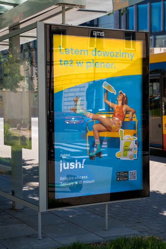 Aplikacja Jush promuje nową usługę poprzez kampanię OOH „Latem dowozimy też w plener” w Warszawie. Na nośnikach odnajdziemy wakacyjne scenki zachęcające do skorzystania z usług ekspresowych zakupów online. Nie tylko w domu czy w biurze, ale również podczas wypoczynku na łonie natury. W kreacji wykorzystano charakterystyczną dla marki kolorystykę i inspirowane komiksami ilustracje, a całości dopełniają bohaterowie cieszący się słonecznymi dniami np. podczas grilla czy na huśtawce.