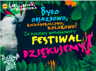Lidl więc nie tylko karmił, ale i zabawiał Woodstockowiczów. Poza tym, świetnie zaprojektowane stoiska, koszulki, ekotorby na zakupy z rozpiską koncertów (ponad 150 tysięcy) – byłam i jestem w szoku.