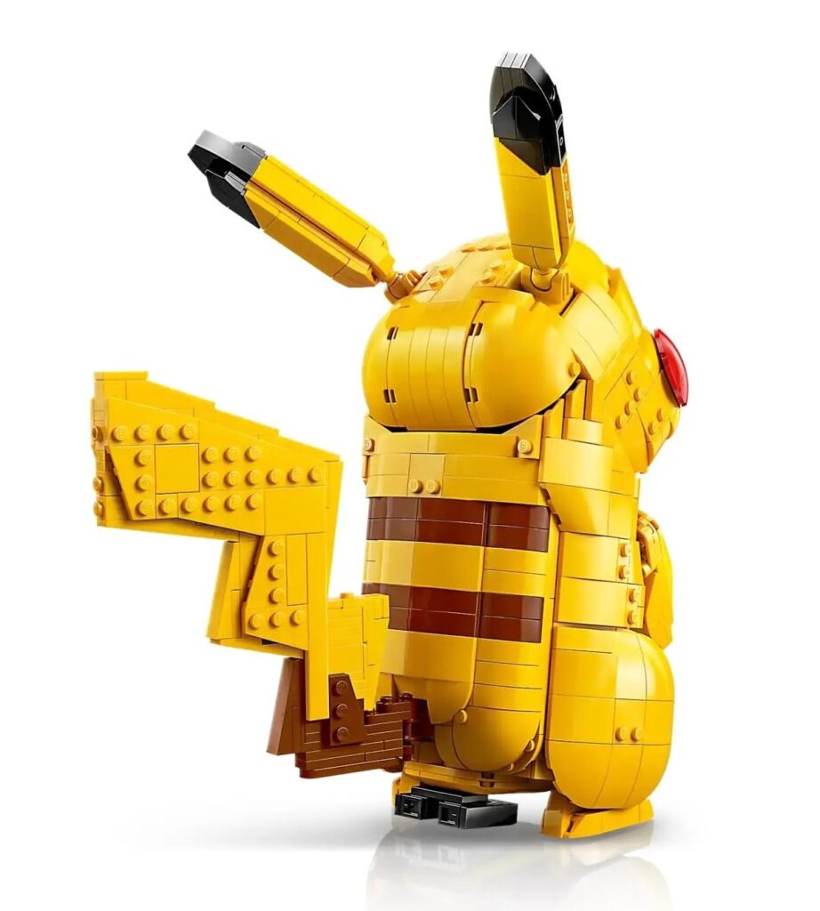 Zestaw składa się z 2 050 elementów i zawiera czarną podstawę w kształcie pioruna, na której umieszczono m.in. ukrytą cyfrę „25”, symbolizującą numer Pikachu w Pokédexie. Konstrukcja umożliwia ustawienie figurki zarówno w dynamicznej pozie bojowej, jak i w pozycji siedzącej z zamkniętym Pokéball.