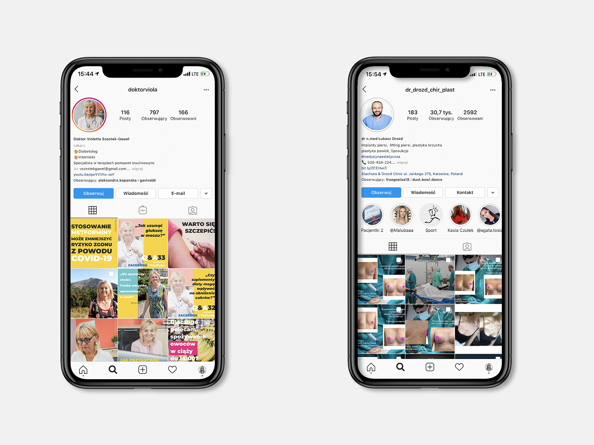 Odpowiednio opracowana strategia powinna zakładać znalezienie wyróżnika i wdrożenie go do komunikacji. Istotne jest wskazanie konkretnej cechy, która wyróżni nazwisko wśród innych specjalistów. Można posłużyć się aspektami funkcjonalnymi – na przykład konsultacje w godzinach 18:00-24:00 lub merytorycznymi, czyli zostanie ekspertem w rozwiązywaniu określonego problemu. Strategicznie, druga opcja będzie mieć większe znaczenie w długoterminowej perspektywie. Obrazując ten przykład, możemy posłużyć się przykładem dwóch Instagramowych kont: @doktorviola – dr n med. Violetta Szostek-Gaweł, diabetolog, która pozycjonuje się w opisie jako „specjalista w terapiach pompami insulinowymi” oraz @dr_drozd_chir_plast – dr n med. Łukasz Drozd, chirurg plastyczny, którego podstawą komunikacji są w znacznej mierze metamorfozy operacji powiększania piersi implantami oraz efekty liftingu piersi. Wyróżnik pełni istotną rolę w budowaniu zaufania do zakresu wiedzy i doświadczenia danego specjalisty. Tym samym, pełni istotną rolę w procesie podejmowania decyzji przy powierzeniu swojego zdrowia danemu lekarzowi.