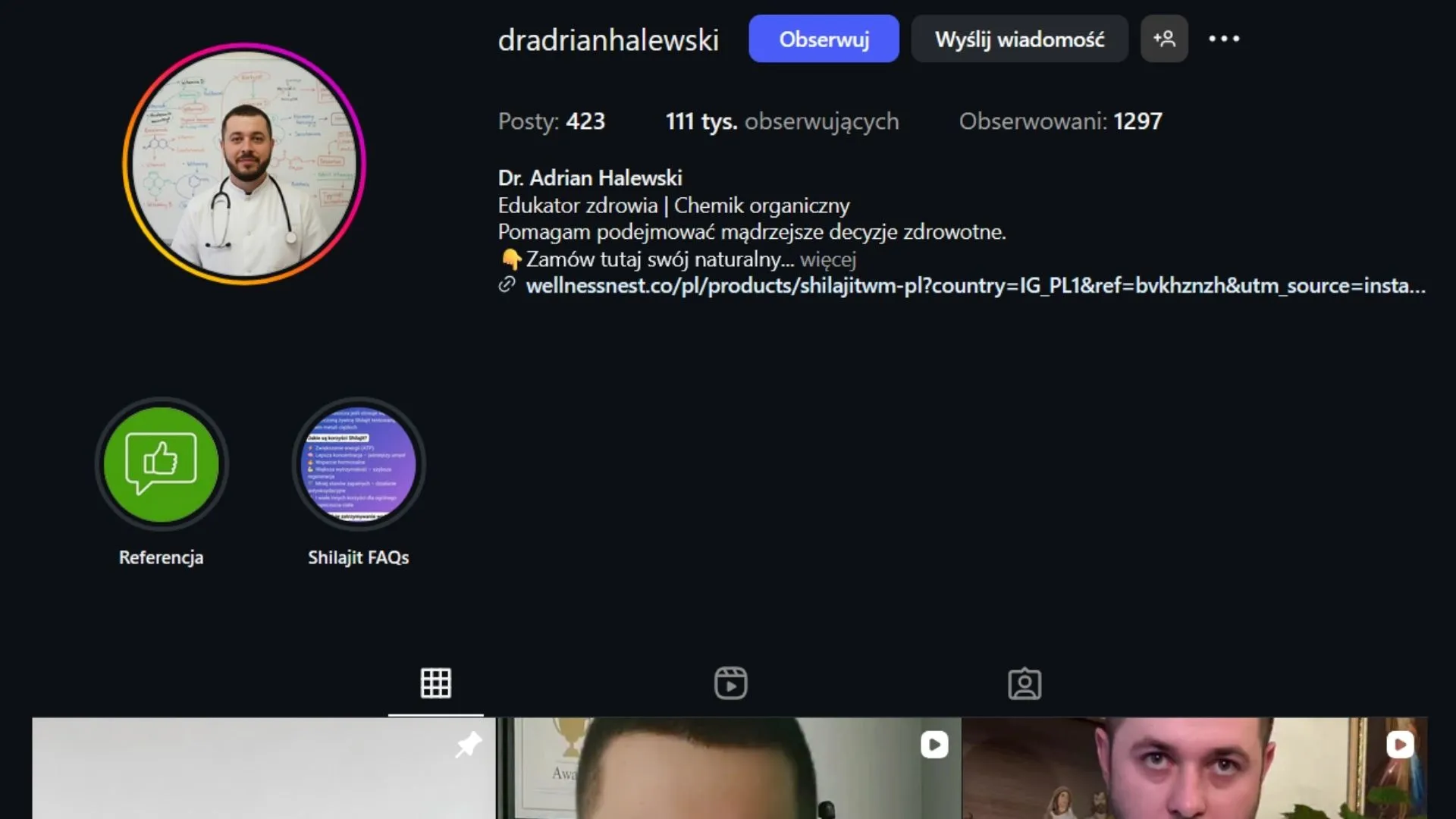 O profilu doktora Adriana Halewskiego poinformowały influencerki – Paulina Górska i Justyna Nater. Jego konto obserwowało ponad 100 tys. użytkowników. Domniemany lekarz reklamował głównie jeden specyfik, który miał być lekiem na wszystko – zmęczenie, krótkowzroczność czy bezpłodność.