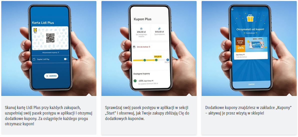 Jak działa „Kupon Plus”? To proste – każde skanowanie aplikacji przybliża użytkowników do otrzymania dodatkowych kuponów. Wystarczy zeskanować kartę Lidl Plus przy każdych zakupach i pasek postępu w aplikacji uzupełni się automatycznie. Za osiągnięcie każdego progu klient otrzyma specjalny kupon. Dodatkowe kupony pojawią się w zakładce „Kupony” – powinny być aktywowane przed wizytą w sklepie. Kupony, które oferuje aplikacja Lidl Plus to prosty i wygodny sposób na oszczędzanie, produkty można kupić nawet o kilkadziesiąt procent taniej.