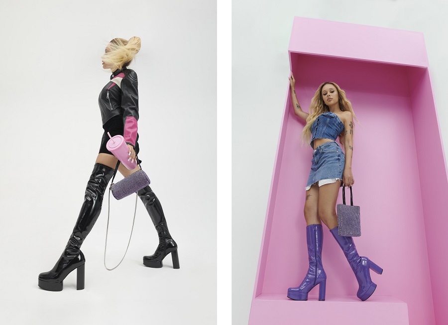 Kolekcja kapsułowa Let’s Party silnie nawiązuje do imprezowego stylu lat 2000, przywracając na parkiety topowe elementy ubiegłej dekady. Słodkie, cukierkowe stylizacje w klimacie barbie core uzupełnia obuwie na masywnych platformach. Wszechobecny blask i błysk nie pozostanie niezauważony na parkiecie, mieniąc się w szalonym tańcu.