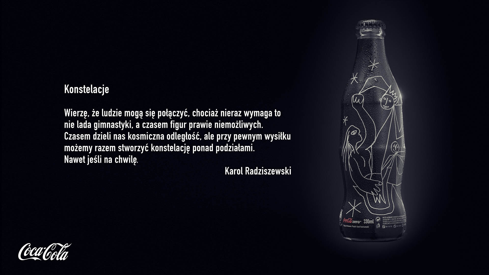 Kampania „Razem smakuje lepiej” i symboliczna kolacja „Sen nocy letniej. Cudowne konstelacje” stały się impulsem do powstania kolekcjonerskiej butelki Coca-Cola zaprojektowanej przez Karola Radziszewskiego, zatytułowanej „Konstelacje”. Sam artysta tak mówi o idei projektu: Wierzę, że ludzie mogą się połączyć, chociaż nieraz wymaga to nie lada gimnastyki, a czasem figur prawie niemożliwych. Czasem dzieli nas kosmiczna odległość, ale przy pewnym wysiłku możemy razem stworzyć konstelację ponad podziałami. Nawet jeśli na chwilę. Kultowa butelka Coca-Cola zamieniła się w obiekt sztuki z bardzo ważnego powodu. By dać impuls do zatrzymania się i zapytania – czy w codziennym biegu uważamy, żeby chwile spędzone razem były prawdziwe i autentyczne? Na ile jesteśmy otwarci i pełni szacunku, wobec tych, których nie znamy?