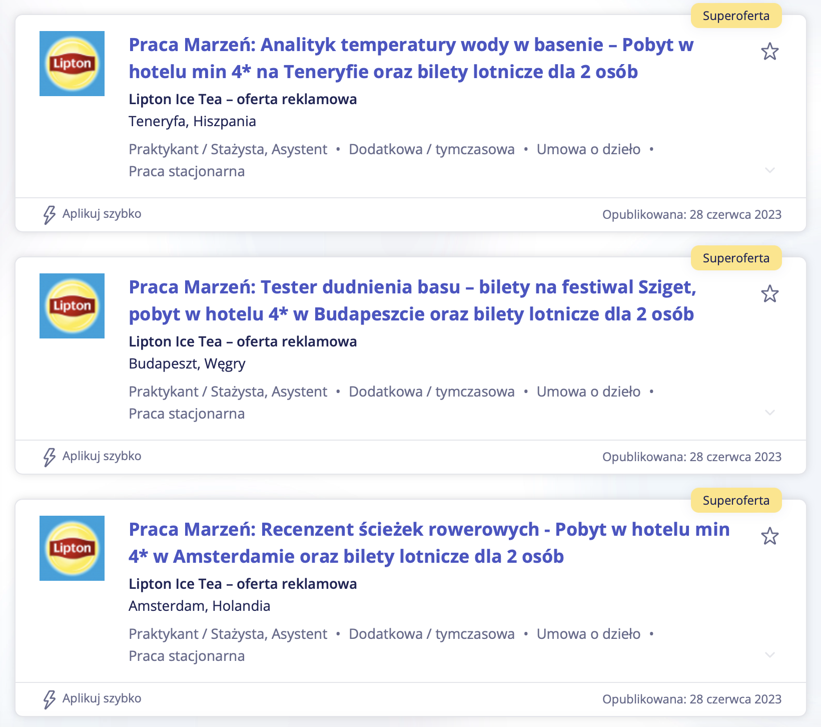 Lipton Ice Tea proponuje coś zupełnie innego, w myśl idei „wrzuć na luz, korzystaj z życia i dziel się słońcem” oferuje 5 niestandardowych alternatyw dla pracy sezonowej. Pieniądze za odpoczynek i korzystanie z lata? Marka Lipton Ice Tea pokazuje, że jest to możliwe.