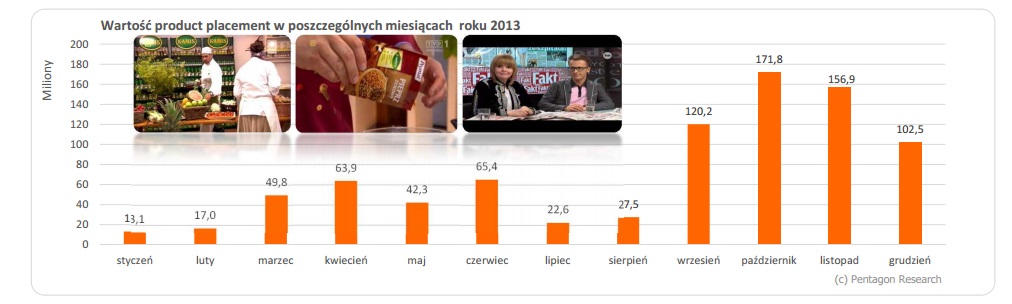 Przedmiotem monitoringu były wszelkie ekspozycje produktów i marek widoczne na wizji co najmniej przez jedną sekundę, zarówno oznaczone, jak i nieoznaczone informacją o lokowaniu. Największą wartość lokowania zanotowano w październiku i listopadzie. Najsłabsze okresy to początek roku i wakacje.