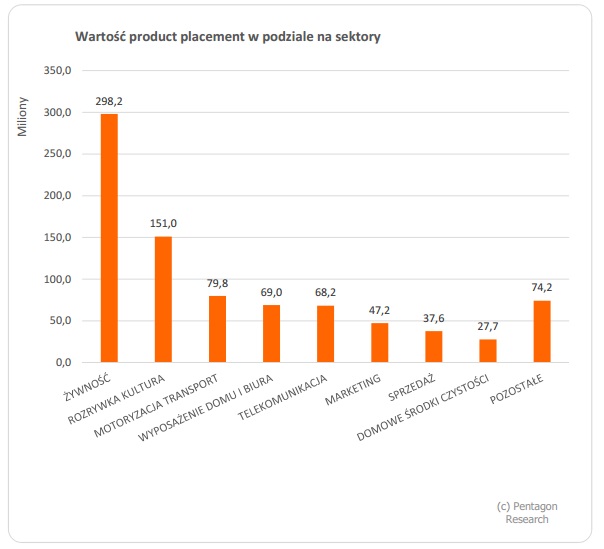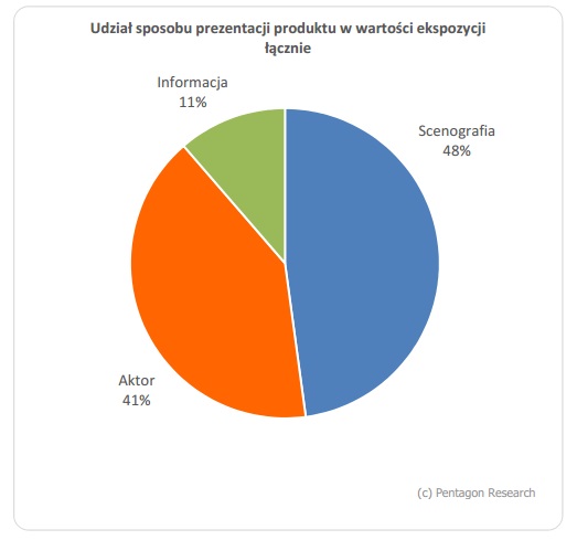 Największą wartość osiągnęły ekspozycje w scenografii, nieco mniej warte były ekspozycje prezentowane przez aktorów. 11% udział odnotowały ekspozycje w postaci logotypów i napisów (nazwy marek i firm).