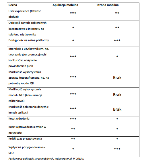 To najważniejsze pytanie, które zadają sobie sklepy, chcące wyjść naprzeciw oczekiwaniom i potrzebom mobilnych klientów. Zdecydowana większość z nich skłania się ku stronom zoptymalizowanym na potrzeby smartfonów i tabletów. Część natomiast korzysta z obu tych rozwiązań naraz. – Stając przed takim dylematem nie warto iść za większością, lecz przeanalizować własne potrzeby. Stworzenie aplikacji mobilnej jest oczywiście droższe, jednak daje sklepowi większe możliwości wykorzystania potencjału smartfona lub tabletu – mówi Piotr Krawiec z mGenerator.pl. Poniżej przedstawiamy zestawienie najważniejszych cech, na które należy zwrócić uwagę dokonując takiego wyboru.