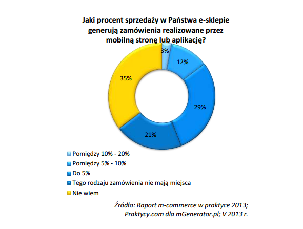 O rosnącej roli zakupów mobilnych w Polsce świadczą wyniki sprzedaży w badanych sklepach. Dla 3 proc. respondentów sprzedaż za pomocą urządzeń mobilnych stanowi już 10-20 proc. ogólnej wartości sprzedaży. Dla 12 proc. ankietowanych sklepów jest to 5-10 proc. ogólnej wartości. W przypadku blisko co trzeciego badanego (29 proc.) wartość ta wynosi do 5 proc.