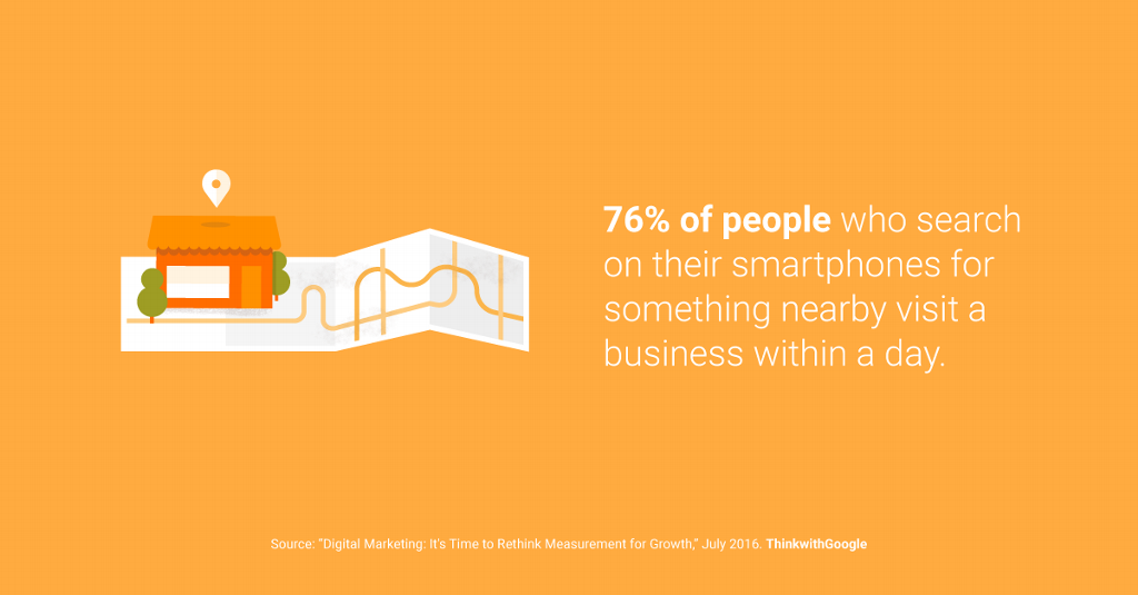 Rys. Według danych Google 76% osób, które szukają na smartfonie jakiejś lokalizacji, faktycznie udaje się do niej w przeciągu jednego dnia (źródło: www.thinkwithgoogle.com)